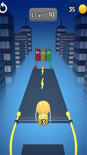 4、灯泡点亮了黑暗的赛道,奔跑会消耗电量,你需要在赛道上多收集一些电量。