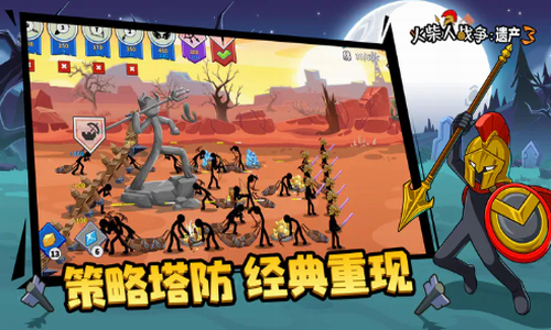 火柴人战争遗产3内置功能菜单版作为一款基于火柴人题材的战争类的动作游戏,其玩法非常的丰富和具有策略性,在游戏中大家只需要组建自己的火柴人战队,从开始的建造单位,开采黄金,学习剑术、枪矛,训练弓箭手、法师,甚至巨人,摧毁敌人的雕像,占领所有的领土等,到后面还必须要指导它们参加战争,还在需要玩家以拖拽的形式进行射击的经典玩法上,增加了战争、塔防、经营等三大方面内容,例如玩家不用控制自己的火柴人进行制造矿工,收集金币,就可轻松制造出各种武器来攻击敌人,还可以获取剑术、枪矛等特殊技能,通过政策、发展、训练、战争来获得声望、地位,所以相比与之前的作品而言,它将更显策略性与挑战性!