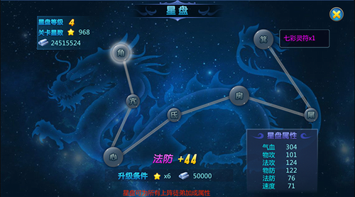 消耗星星可以点亮相应的星盘位星盘拥有7个星盘位。消耗星星可以点亮相应的星盘位。点亮星盘位可以为所有上阵的徒弟增加属性。通关关卡时会获得相应的星星。
