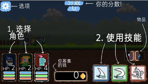 而在战斗界面中需要自由点击切换职业,点击右侧的技能来进行示范,同时还有物品补给,主要是获得积分筹集金币。