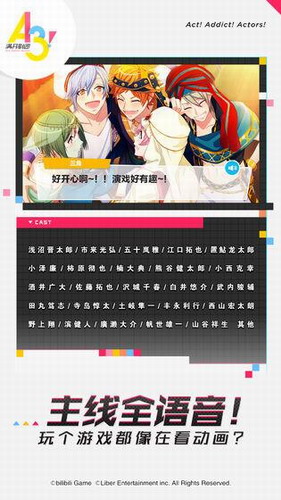 A3!满开剧团,拥有豪华的声优阵容,主线剧情更是采用全语音模式!