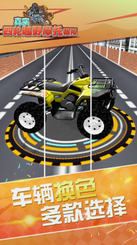 2、在不同的角色中挑选,驾驶你的四轮摩托开启竞速之旅,操作简单