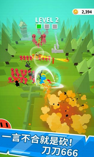 时刻注意自己的走位不要被对方伤害到,拿出你的大刀开始战斗吧。一刀666安卓版是一个拿刀就砍轻松闯关的新作哦,在这里只有疯狂割草的乐趣,没有坑人氪金的痛点。游戏画面清新亮丽,玩家拿起武器,闯入人群就是一顿砍,让玩家的选择性变得更大,在游戏中玩家可以享受到最简单的杀敌乐趣,没有氪金,没有登记压制,游戏中有大量的关卡,大大提升了可玩性,感兴趣的小伙伴快来下载一刀666吧。
