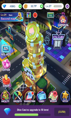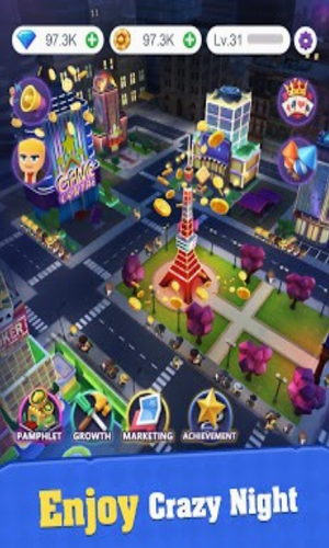 吸引大量游客,扩展你的城市和雄心,娱乐大都市无限钻石版是一款主打放置经营玩法的手机游戏。独特的放置经营内容加上丰富的模式给你带来更好的游戏体验,享受游戏的独特魅力内容,独特的游戏玩法之上还加入了丰富的游戏模式,为我们的玩家带来了更好的游戏体验,在游戏中去享受这款娱乐大都市游戏所带来的独特魅力,你将在游戏中利用有限的资金起步,然后去合理的经营自己的赌场,慢慢的去扩大自己的规模,并且你还将涉足到其他的产业中去,比如小型的建筑俱乐部,或者是酒店等等,有着各式各样的建筑物,然后去吸引更多的游客,这样你将获得更多的收入