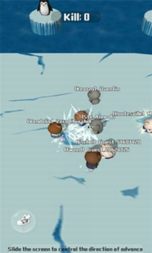 3、小心不要掉进水里,尽量把对方打进水里!打倒尽可能多的对手,你会变得越来越大,越来越强大