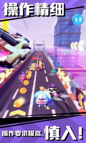 2、刺激的驾驶自己的赛车飞驰在跑酷的赛道上,这是很多玩家都难以掌控的,需要的是自己无尽的训练