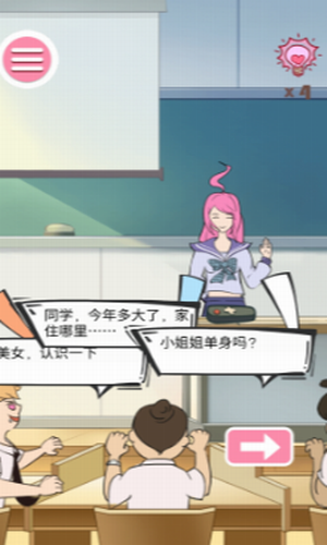 文字对话的方式,讲述的主人公的爱情经历,里面加入了大量的剧情模式。丰富的事件带来更多的游戏乐趣让玩家享受全新的游戏生活。