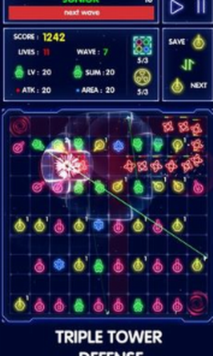 2、超过三个以上的塔合成升级,能得到更强的攻击奖励,简称 “超攻塔”