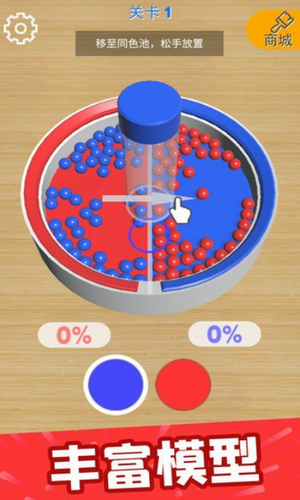 海量的画笔工具等待你的解锁,上百种颜色不一的颜料等待你的使用,整球划一安卓版是一款非常有趣的休闲益智小游戏。这款整球划一游戏的玩法多样,但是,通关有点难度。在整个游戏过程中,玩家们需要认真思考,如何才能在最短的时间类通过关卡。这里的关卡设置都是有意义的,玩家们可以放心大胆尝试,玩家所需要做的仅仅是在球球世界中将这些球类进行分类处理,需要将相同颜色的珠子放置在同一个容器当中,使得混乱的这些珠子回归到有序的状态,游戏的场景以及各种道具的打造都是十分的简约,但都是采用的3D设计风格,每一种颜色都十分的鲜艳,喜欢这款游戏的玩家千万不要错过