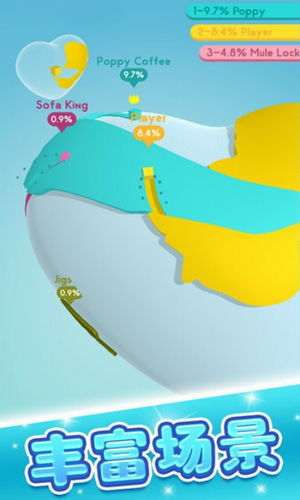 你画的越多,你获得的分数就越多,涂色大作战最新版是一款色彩表现十分精彩的益智休闲游戏。在这款游戏中玩家们将会对一些缺少色彩或是没有色彩的物体进行颜色的补充,游戏的玩法也很简单,只要拿起手中的涂色工具,将空间涂满颜色即可闯关,虽然这款涂色大作战游戏采用的是休闲益智的游戏玩法,但是游戏中的玩法更加的简单没有特别大的难度,玩家所需要去做的就是将游戏中给出的物体添加上不同类型的颜色就可以了,在玩这款游戏的时候还可以为我们的玩家带来减压的效果,是玩家在学习或者是工作之余用来放松的好游戏之一,游戏的画面打造是十分的精致采用了3D的画面风格,还有着更加高清的游戏画质