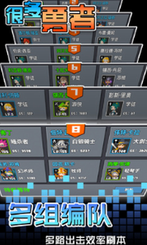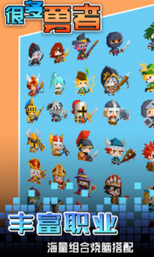 身临其境的打怪操作,实现你的终极成长的目标。很多勇者破解版是一款像素风格的魔幻类角色扮演手游,成为一名实力超凡的勇者完成异次元的冒险任务,全面提升勇者的对战实力和技能,消灭地下城的怪物获得大量的战斗经验,将勇者的经验值全面提升,购买更多的武器演绎全新的异次元世界,在商店购买不同职业的英雄和特色的防具,让玩家感受到独特的游戏体验,还有海量的关卡,每一关都大不相同,但是却会越来越难,让你的游戏体验更加的欢乐愉快。