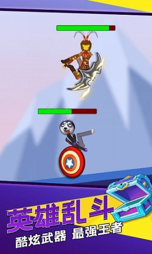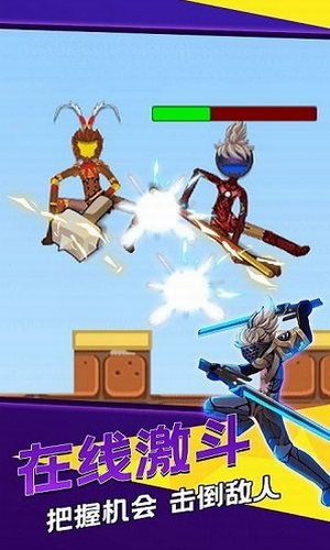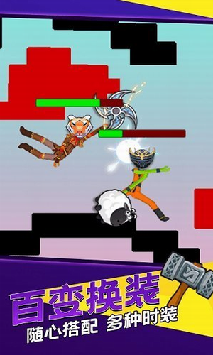 1、玩家在游戏中操控一个火柴人,利用简单的横版摇杆操作操控火柴人进行热血格斗