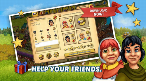 3、神奇的社交游戏功能 - 成为与其他玩家的朋友,并帮助他们在他们的农场。