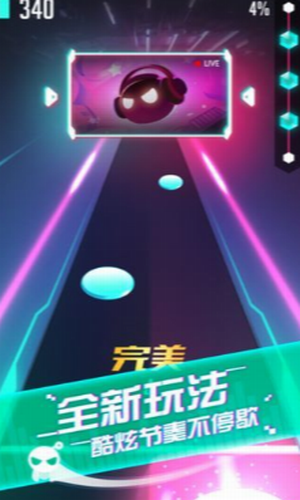 2.点击一次屏幕,球球就会穿过音符格,在不同的时间节奏中,完成歌曲的挑战。