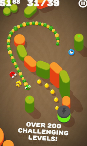 通过点击屏幕来控制贪吃蛇滑行,最终将屏幕中出现的点点都吃掉,完成所有的任务挑战!但是需要注意的是,在挑战中,地图上还放置了超多的障碍来阻碍贪吃蛇滑行哦!所以玩家需要及时调整方向来帮助贪吃蛇哦!