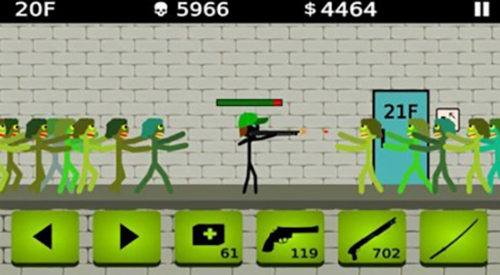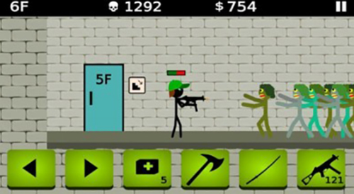 2、散弹火柴人杀死所有的僵尸,找到通往下一层的门。