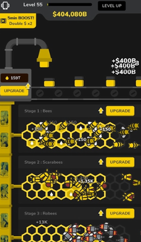 3、游戏玩法简单操作简单易上手!还可以对蜜蜂以及机器进行升级!
