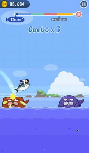 3、游戏里还有升级系统,获得金币升级你的跳跃力,乘着金枪鱼跑到更远的地方去。