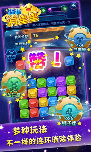 1.这款游戏最大的亮点就是不仅可以连环消除性星星,