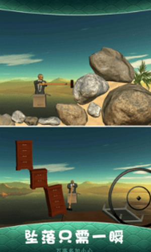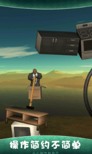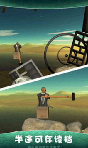 1、玩家控制一个坐在似乎是缸里的人,用一把榔头不断往上爬,操作极其简单;