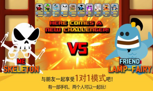 3、与朋友一起玩:在一部手机上和朋友一起玩1vs1游戏。