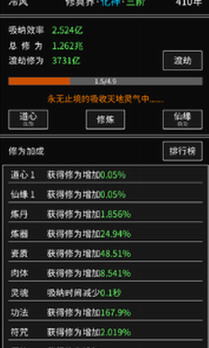 2、在修真无止境游戏中,不需要氪,不需要肝,道心是修真唯一的要求;