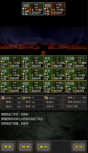 2、小队里面的人物都是由三国里面的武将角色组成,随着游戏的进行系统会随机触发各种事件。