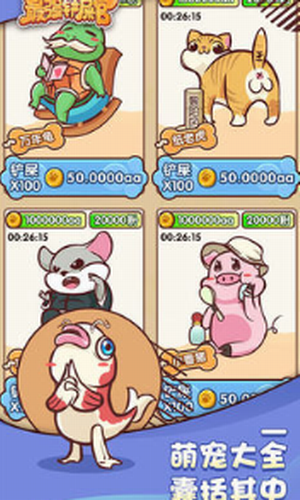 成为最强铲屎官,养诸多可爱的小动物。最强铲屎官红包版是一款充满诸多乐趣的指尖放置养成游戏。现在成为一个专门照顾各样动物的铲屎官开始你的趣味动物养成之旅吧,你可以在你的家中喂养猫咪、小狗、金鱼等各样的动物,每天都可以和这些可爱的动物互动,通过与它们一同玩某些小游戏让你们之间的亲密度提升,玩家也要全方位的去照顾它们。游戏的内容非常的多样,你需要保证小动物的健康,及时的给它们喂食,洗澡,让它们快乐成长!