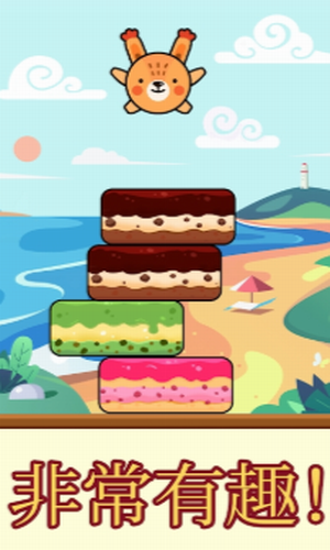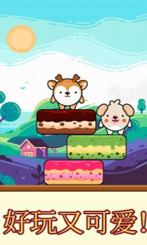2、轻松简单的操作,控制着小动物跳上了从左右两边飞过来的蛋糕上,感受一把小刺激;
