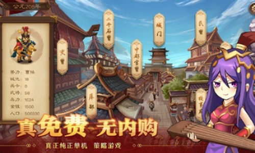 3、采用“三国”主题,小巧清新的卡通游戏风格和精美的地图场景;