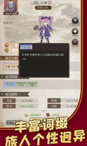3、 角色丰富,海量词缀,族人个性迥异,安排到合适的岗位上,提升经营的效率。