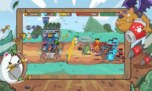 1、经典塔防玩法,招募可爱的猫咪守卫村庄,抵抗怪物的入侵;
