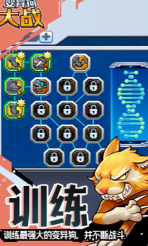 组成一支能力各异的变异狗大军来为你作战。变异狗大战破解版是一款非常经典好玩的闯关游戏,自由舒适经典好玩的抖音游戏,在变异狗大战游戏中,舒适经典的游戏模式和玩法,可以让玩家有着不同的舒适和快感,经典有趣自由好玩,每一个模式都能为你带来不同的游戏快感,这里各种品种的狗狗任你强化,根据基因序列来强化狗狗,随时进行变异获取新品种的狗狗,一起争夺狗狗大王的称号。