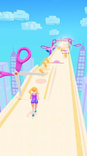 1、脑洞很大的一款跑酷求生游戏,玩家将会操控一个长发美女,在剪头发快跑游戏的赛道上奔跑。
