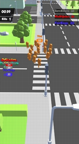 派对城市人潮最新版是一个超级好玩的休闲益智手游,开局你会一个人出发,寻找武器装备去壮大自己,然后拉新的中立伙伴作战,你可以不断的扩大你的队伍,当你的队伍扩大到足够强的时候你就可以去寻找玩家,与他的队伍对抗,比比谁的队伍更厉害。击败比你弱的团队可以击败对手,但同时也会消耗你的战斗人数,团队越小越灵活越大反之,你的团队越大实力越强排名也就会越高。