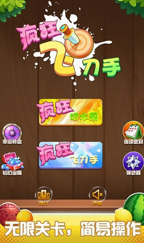 2、游戏中有两种娱乐模式,一种切水果,一种飞刀手。