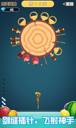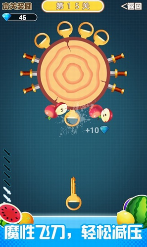 1、游戏非常简单有趣,玩家只需要在圆柱上插满指定的刀子。